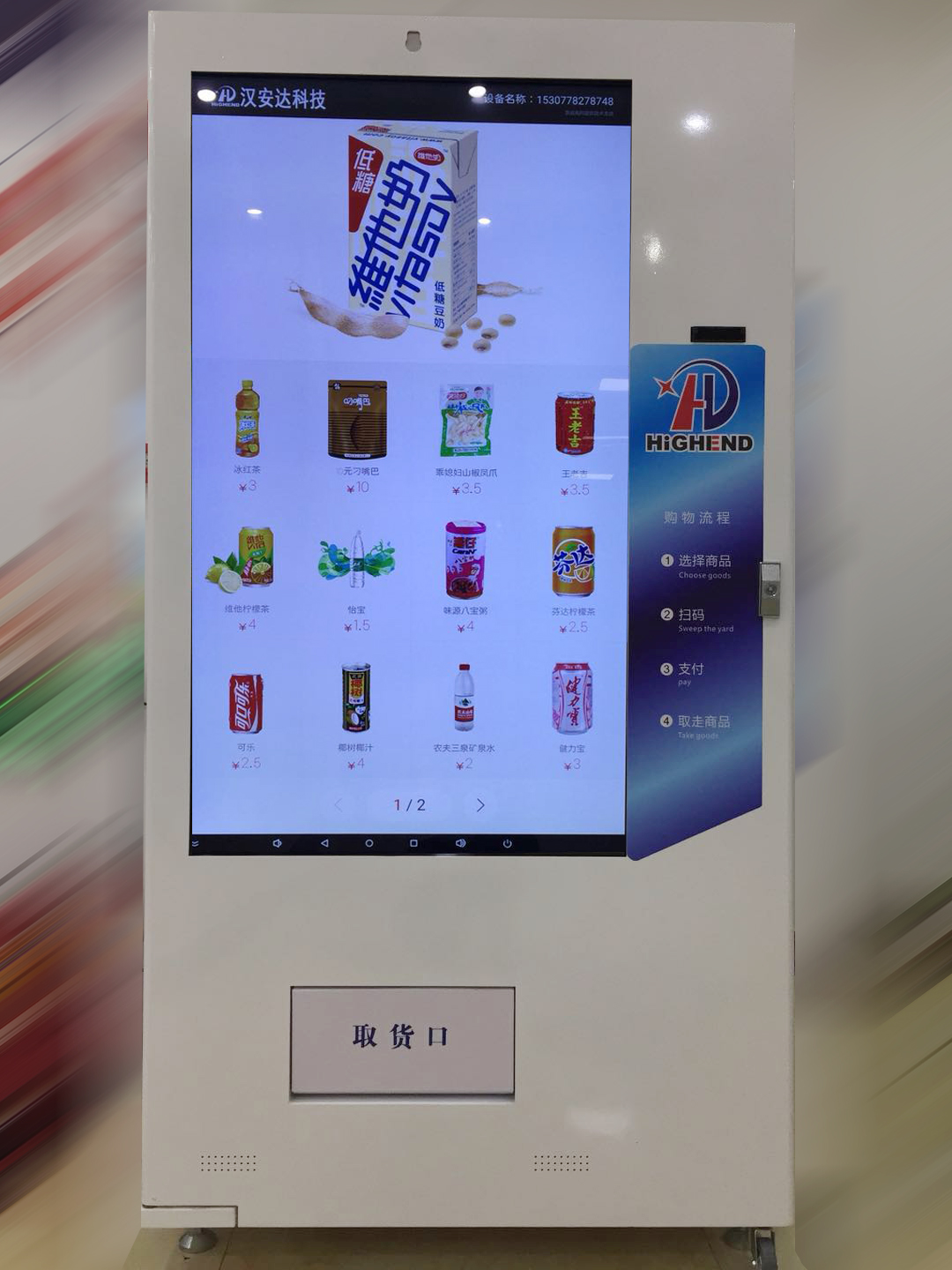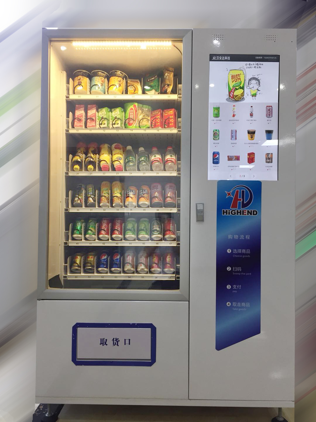 在促銷策略上,自動售貨機運營商可以運用電子廣告和網絡廣告,在每臺銷售終端設置屏幕播放銷售廣告,漢安達自動售機搭載55寸、27寸等多種尺寸電子觸摸屏,能增加新時代消費者關于產品真實性的體驗,增加對產品的信任度。